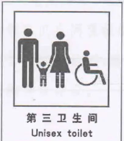 第三卫生间 是在厕所中专门设置的、为行为障碍者或协助行动不能自理的亲人(尤其是异性)使用的卫生间。”此概念的提出是为解决一部分特殊对象(不同性别的家庭成员共同外出,其中一人的行动无法自理)上厕不便的问题,主要是指女儿协助老父亲,儿子协助老母亲,母亲协助小男孩,父亲协助小女孩等。