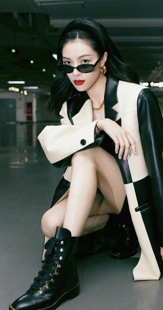 正如江疏影的示范,黑皮衣配黑皮裤可是时尚圈的常用伎俩。total顺色的皮衣造型给人高冷的感觉,飒爽帅气,黑色更是增添几分犀利。