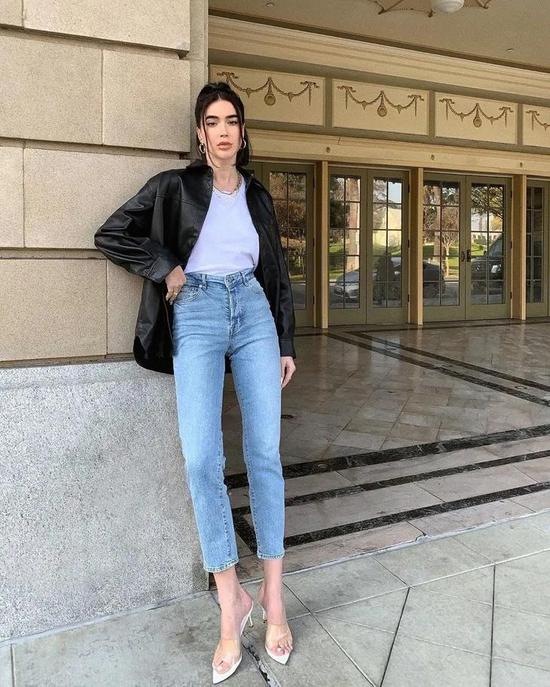 皮裤显胖?黑色牛仔裤虽然不如皮裤有杀气,但胜在保留气场的同时,远没有那么挑人。
