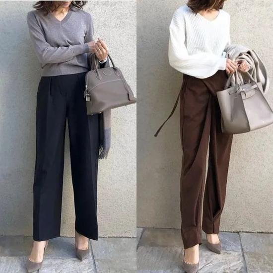 针织毛衣搭配阔腿裤,显瘦的同时还很显气度。