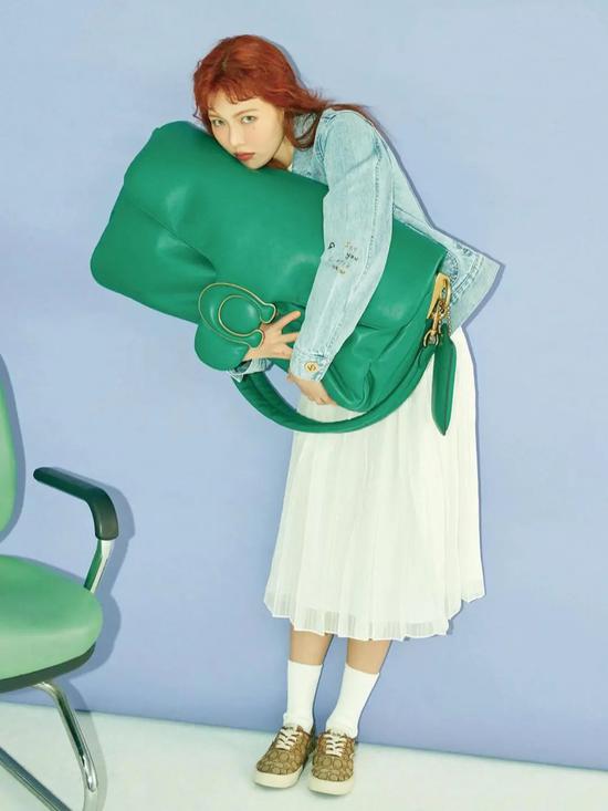 甚至还有品牌推出的老花系列袜子,泫雅展示起来也是毫不费力。蓝袜子配黑鞋子,简单组合高级感满格。