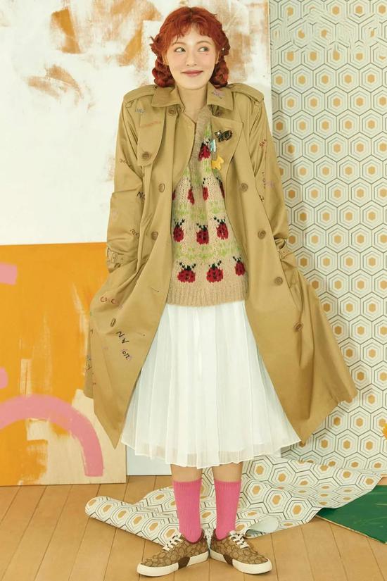 沈月一直就是日系萌妹的代表,身穿格纹毛衣搭配百褶短裙,中筒袜加上乐福鞋,一身穿扮舒适随意又很可爱俏皮。