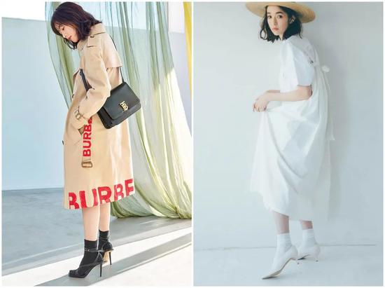 不过有意思的是,日杂里有很多关于高跟鞋配短袜的组合示范,一看到这个总让我有种回忆感。