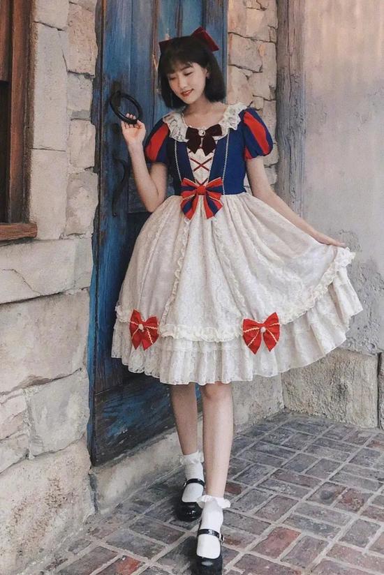 白袜子跟玛丽珍鞋也是经典CP,正如李艺彤的示范,给人一种洛丽塔少女感~