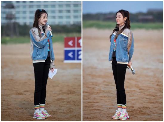 休闲运动风潮在国内女明星的穿搭里也同样有所体现,比如热巴,她的造型就可圈可点。