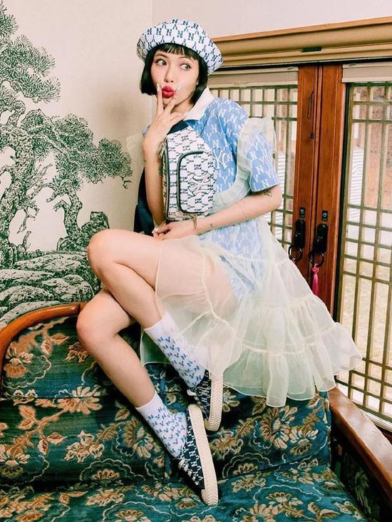 说到这两年最火的风格,或多或少会有人想到“泫雅风”,少女与性感并存,配色鲜艳活泼却一点也不会让人觉得土俗。她以牛仔服搭白色纱裙,又配上白袜子做点缀,清新感十足。