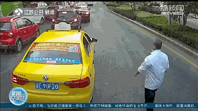这名男子穿了件白色长袖,不像是警务人员。只见他一边做着手势,一边呼唤着,让身旁的黄色出租车后退,然后又到跑前面的几辆私家车前,继续挥手示意后退。