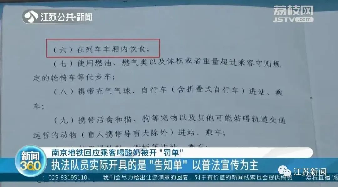 乘客喝酸奶被开“罚单”?南京地铁回应!