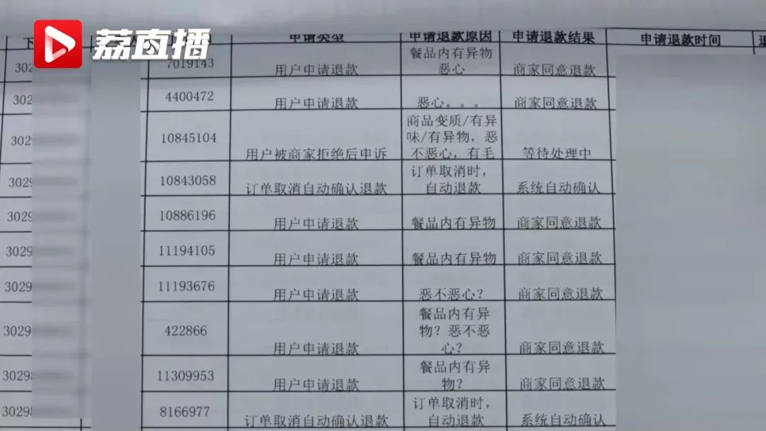 “顾客发了一张照片过来 ,我一看上面有一根头发,但是我们外卖出去之前都检查过了,肯定是好好的,我们这边操作的时候都戴了帽子,不可能是我们这边的问题。顾客说要么退款 ,要么就给我们打差评,后来想想就算了,就二十几块钱的事,就直接退款给他了。”王先生说。