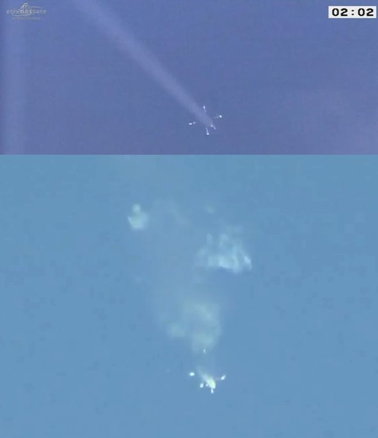 然而在发射后第118秒时,理论上应是四个助推器同时脱离火箭,但其中一个火箭助推器分离时出现故障,导致箭体受到一定冲击,甚至能从飞船视频记录中看到舱内出现大幅抖动。很快宇航员报告出现了逐渐失重的感觉,这意味着火箭二级的动力不足,非正常工作。