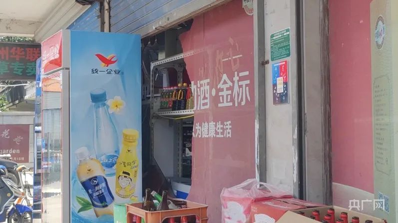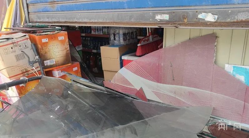 受爆炸影响,周边的商户玻璃出现破裂(央广网记者 韩晓余 摄)