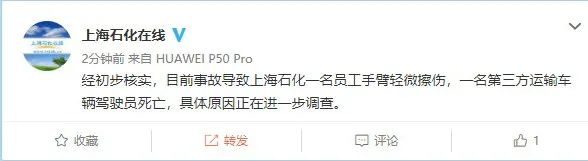 经初步核实,目前事故导致上海石化一名员工手臂轻微擦伤,该伤者为男性,正在复旦大学附属金山医院进行救治,目前情况稳定。一名第三方运输车辆驾驶员死亡,具体原因正在进一步调查。