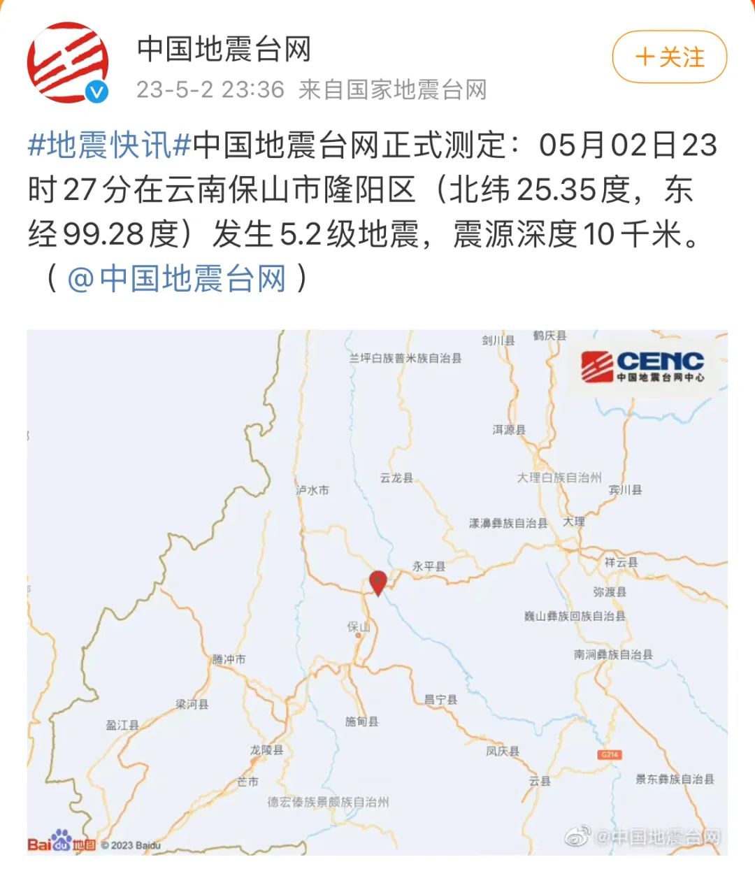 云南保山5.2级地震,大理、临沧等震感明显!多地连夜驰援!