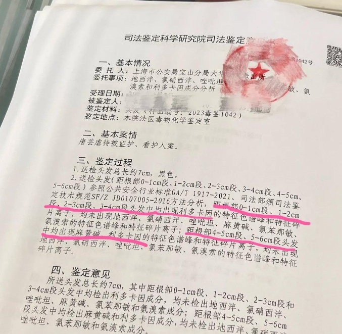 家长爆料的医院验伤单显示,幼童身上多处存在针尖样小孔,“家长们随即要求验毛发 ,结果,五个孩子的毛发都含有麻黄碱 ,其中有两个孩子含有利多卡因 。”