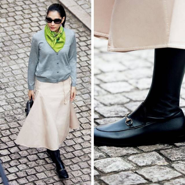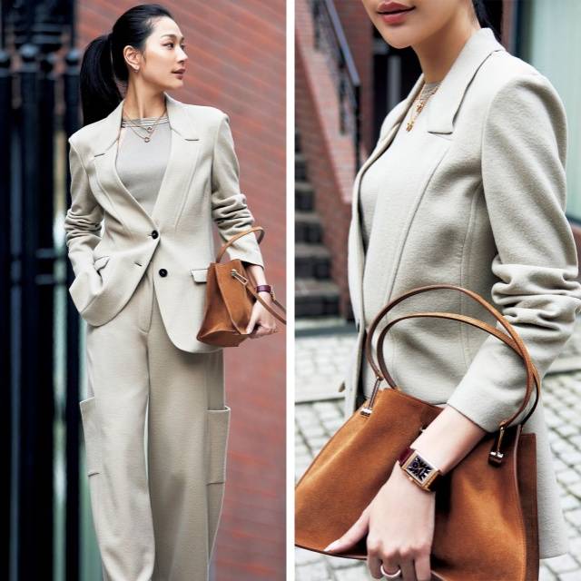 丝巾灵巧地缠在领间,整体造型传统英伦的复古韵味,又融入了摩登创意。正是这些看似微小的设计“叛逆”,让穿搭变得更加有趣和富有层次,也更能体现出品味与独特个人风格。