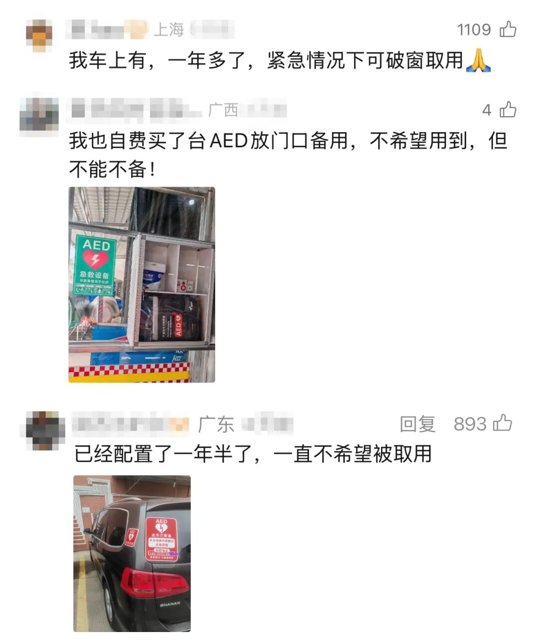 还有不少网友表示,自家也配置了AED↓