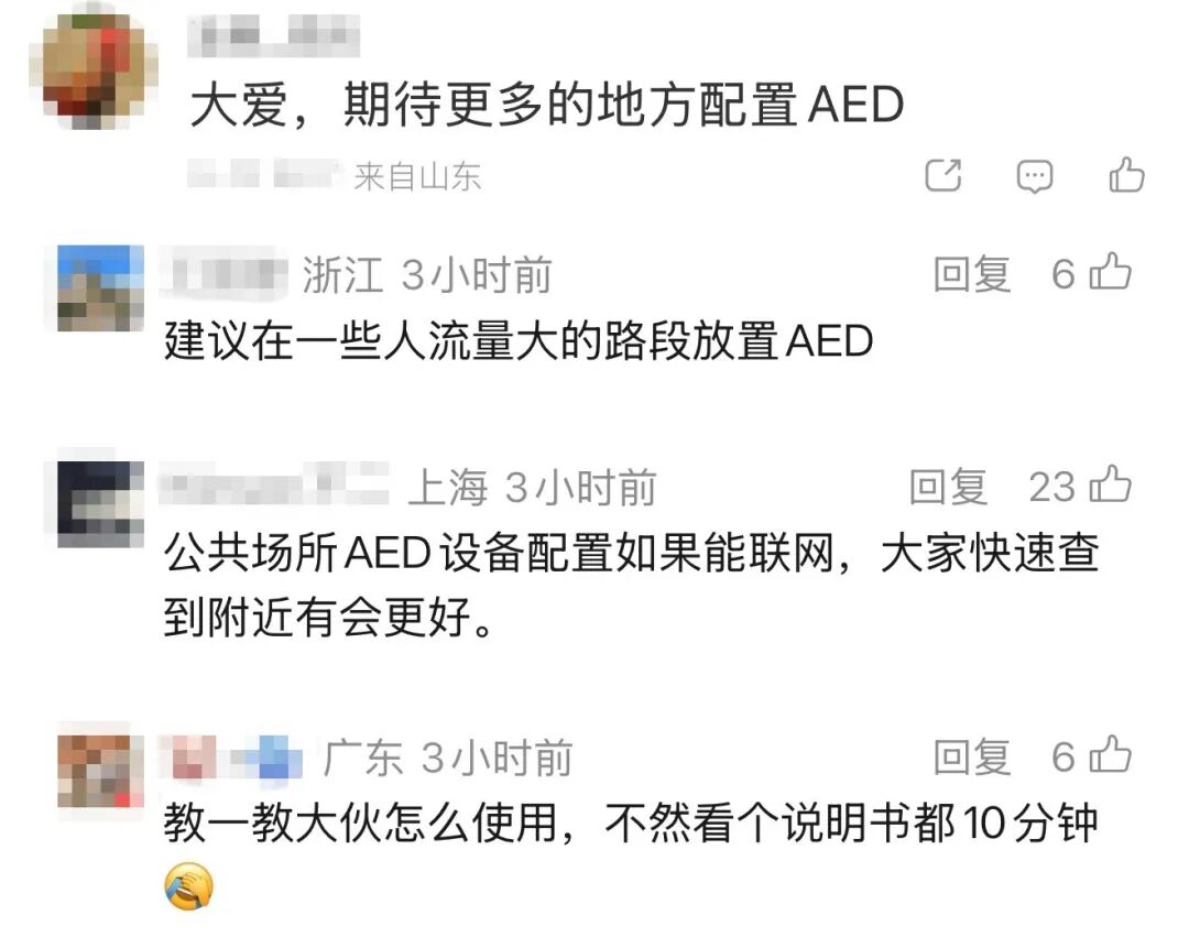 还有网友表示,“希望普及AED的配置和使用”。