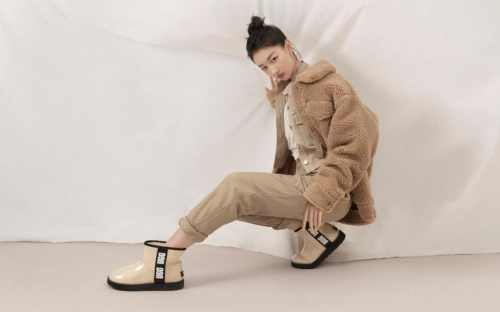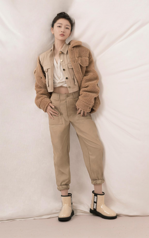 周冬雨身着经典本色迷你短靴、弗朗西斯飞行员夹克演绎UGG秋冬品牌大片