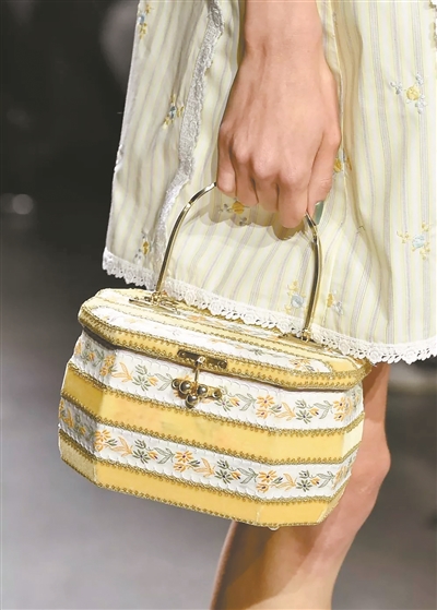 另外,盒子形状的包包今年尤其火爆,比如Anna Sui采用的古董感碎花面料,视觉上让包包有种复古精致旧时光的感觉,拿起时也许是个首饰盒,也许是水果篮,还可能摊开是一张妥妥的桌布。当功能性不再成为包包的第一准则时,设计师所要表达的个性则更加自由,而赋予在包身上的装饰就是风格的符号,既是包饰,也是个人标签。