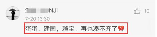有粉丝留言惋惜道:“蛋蛋,建国,赖宝,再也凑不齐了”