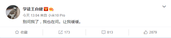 赖宝去世的消息在网上散播开来后,作为好友,王自健在下午发文,写道:“别问我了,我也在问。让我缓缓。”
