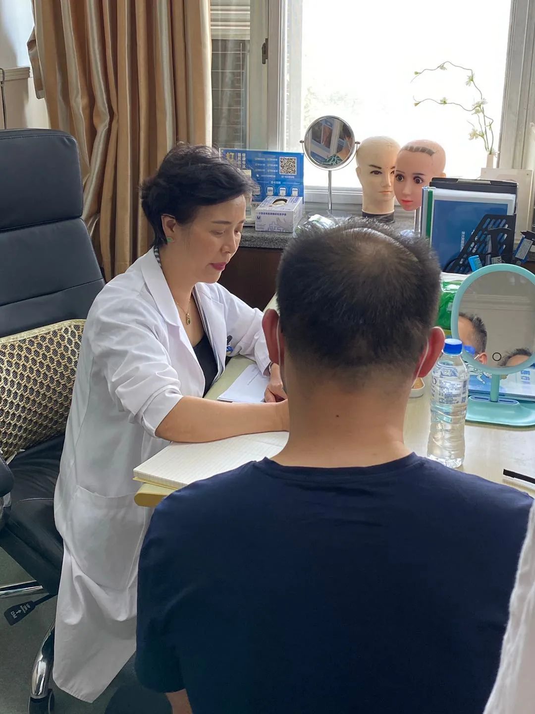 张菊芳说,这个男生也有脱发的家族遗传,之前因为备战高考压力很大,开始掉头发,所以高考一结束,家长就带他来医院了。