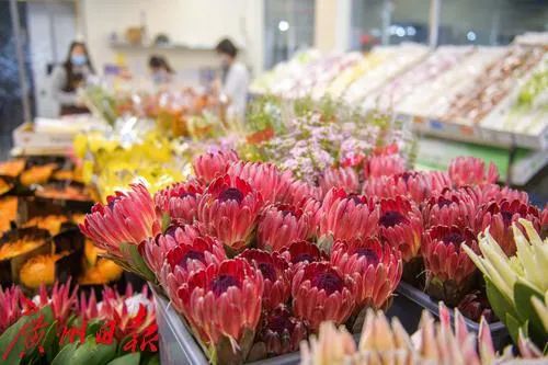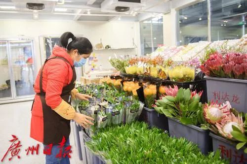 记者推门走进一家进口花卉商铺,店员正对照手机为一位来自佛山顺德的客户进行配货,肯尼亚眼线玫瑰、苹果酱、奥哈拉……价值近300元的进口鲜花现场直接打包,然后通过物流迅速发出。