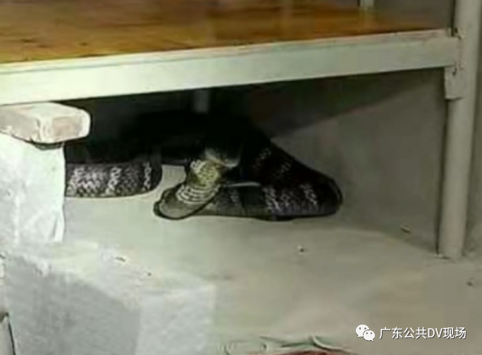 盘蜷在床底,露出蛇头