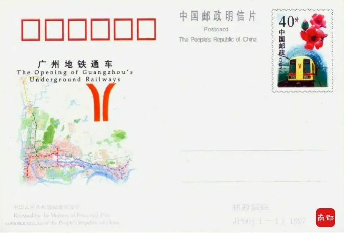 记者查阅文献资料发现,1997年6月28日,卢天骄为广州地铁一号线通车设计的邮资明信片发行,融入了红棉花、标志性的黄色车体,以及当时尚在规划中的地铁线路图等元素,一经上市即售罄,如今已是老广州人心中的一段难寻记忆。