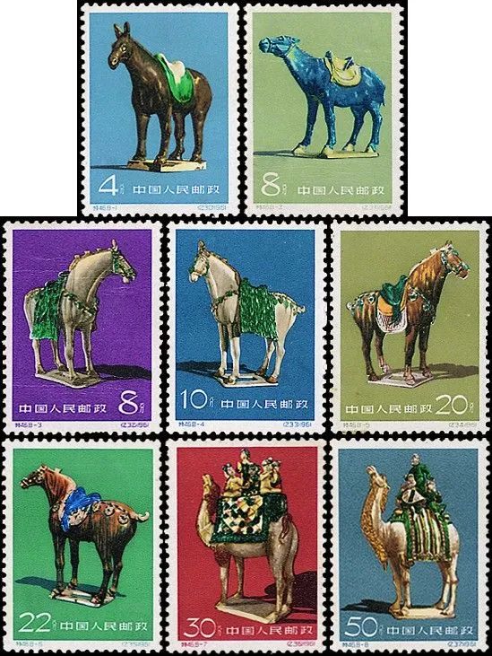 1961年发行的由卢天骄设计邮票《唐三彩》