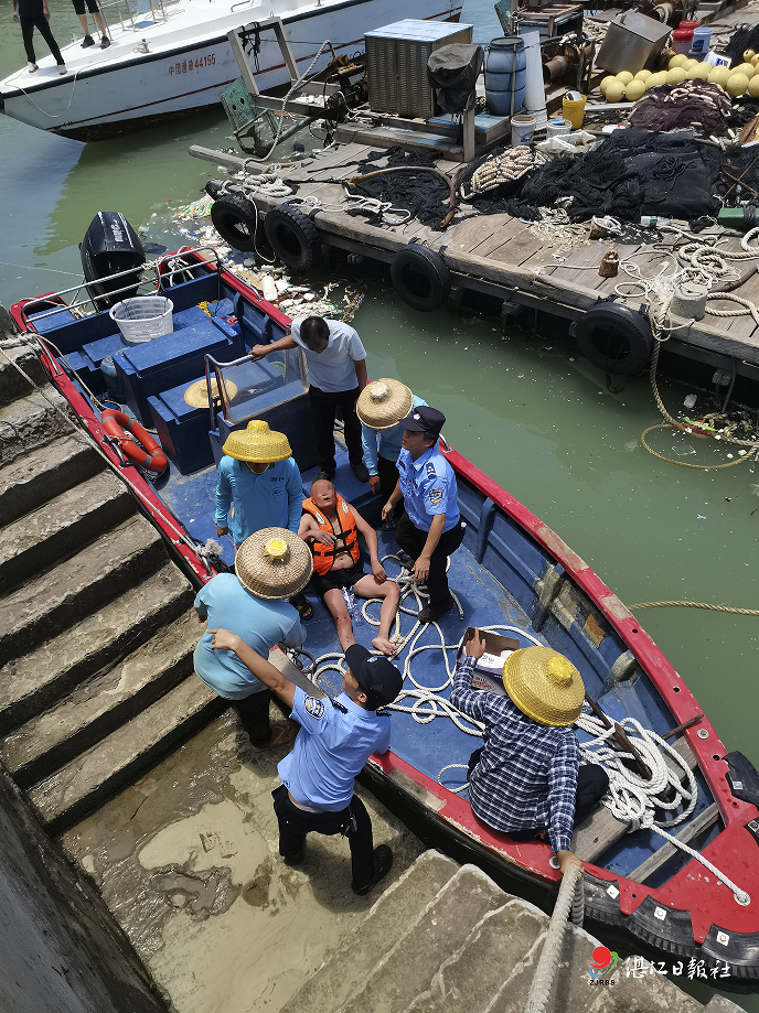 时间一分一秒地流逝,每过去一分钟,朱某寒父亲生存的希望就愈发渺茫。然而,奇迹总是会眷顾那些不放弃的人。5小时后,在湛江角尾乡附近海域一处空置的网箱上,搜救人员终于发现了朱某寒的父亲。
