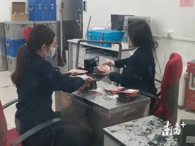 中国银行潮州分行工作人员正在鉴别、清点残币。受访者供图