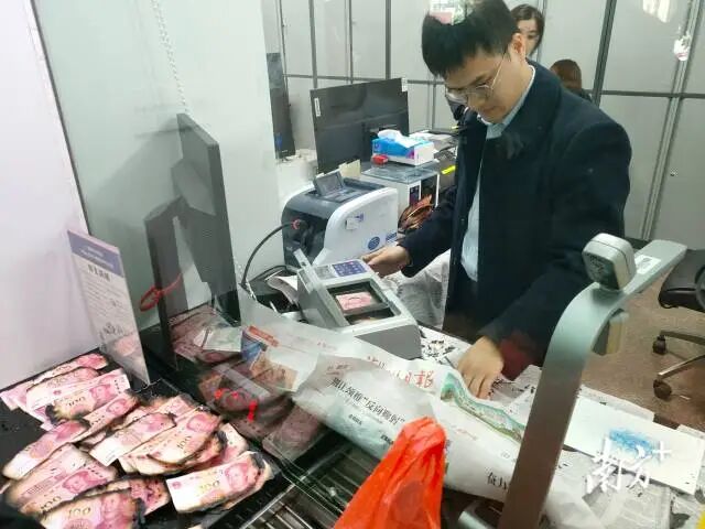 中国工商银行潮州分行工作人员利用专业设备判定兑换额度。受访者供图