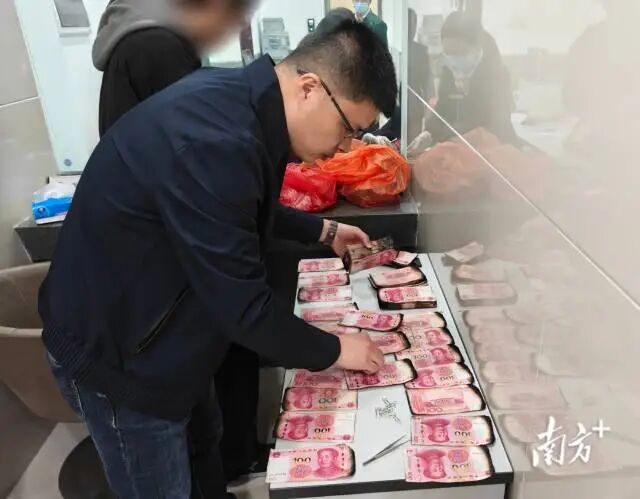 中国人民银行潮州市分行工作人员正在鉴定研判残币情况。受访者供图