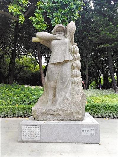 《香蕉女》 (原作由关伟显创作、花岗石) 作品塑造了一位珠江三角洲的少女,她背着丰收后沉甸甸的香蕉,满怀喜悦,人物塑造朴素、生动,富有浓郁的生活气息。该作品作者关伟显(1932.10~1997.8),广东南海人,1956年为中央美术学院雕塑系研究生,广州美术学院副教授。