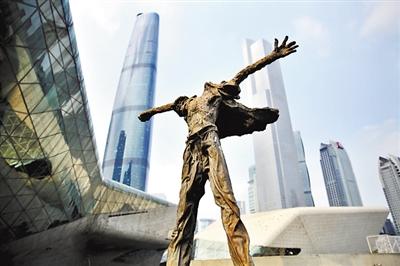 大剧院周边展出过一尊主题为《狂歌》的人物雕塑(左图),他张开双臂拥抱现代化的广州城。