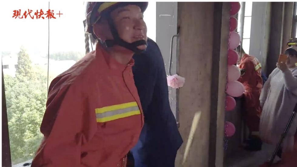 一切准备就绪后,指导员徐迪吹哨,要求中队集结,进行爬绳训练。毫不知情的董杰在指导员的要求下开始做训练准备。当董杰爬到4楼,看到用粉色气球装扮一新的训练塔内部,以及一个身穿白色纱裙的美丽身影时,他惊到了,大呼:“你怎么在这?”