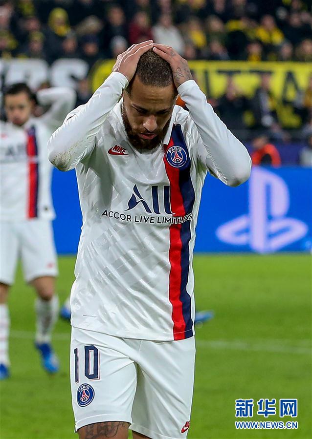 2月18日,巴黎圣日耳曼队球员内马尔在比赛中。 当日,在德国多特蒙德举行的2019-2020赛季欧冠联赛八分之一决赛首回合比赛中,德甲多特蒙德队主场以2比1战胜法甲巴黎圣日耳曼队。 新华社发(约阿希姆·毕瓦勒兹 摄)