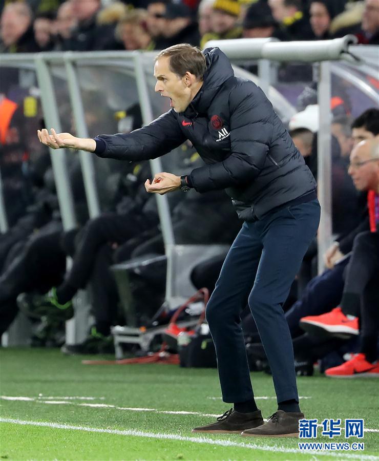 2月18日,巴黎圣日耳曼队主教练图赫尔在场边指挥。 当日,在德国多特蒙德举行的2019-2020赛季欧冠联赛八分之一决赛首回合比赛中,德甲多特蒙德队主场以2比1战胜法甲巴黎圣日耳曼队。 新华社发(约阿希姆·毕瓦勒兹 摄)