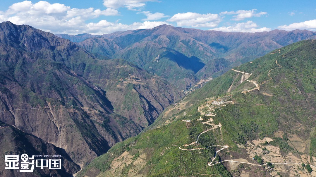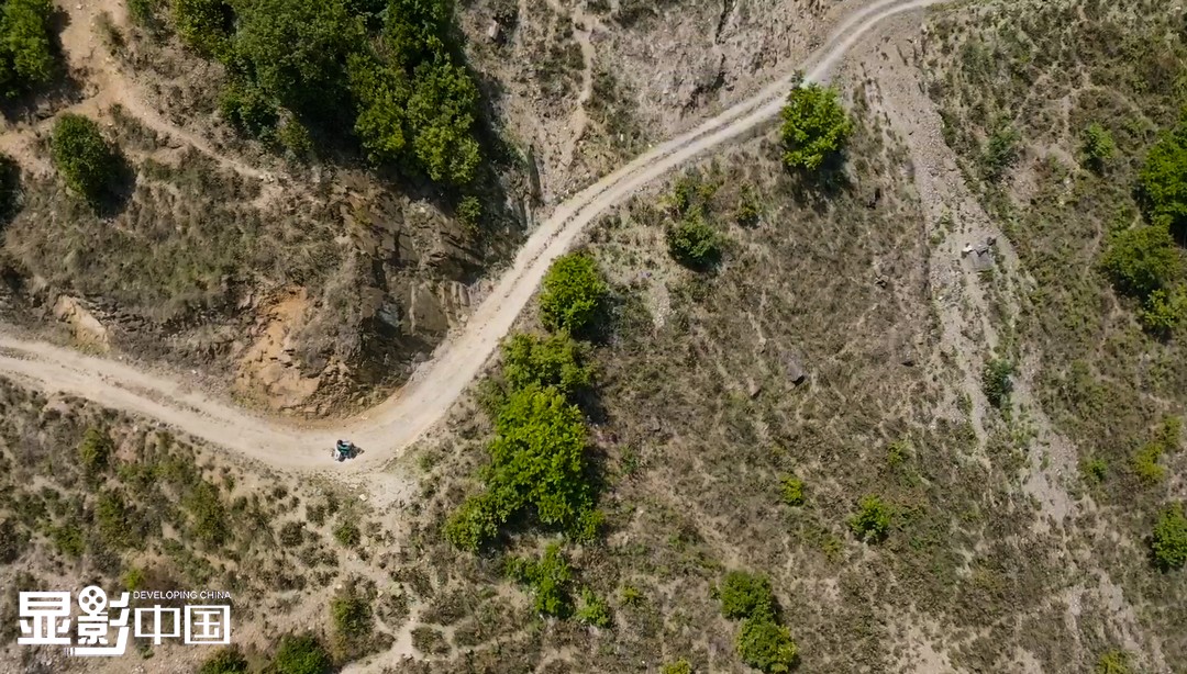 在桑南才的记忆中,已多次与死神擦肩而过。有一次,在一个急弯处连人带车摔出路面,一个手指头也因此摔断。图为航拍桑南才骑行在高山峡谷间(5月10日摄)。