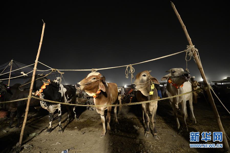 这是7月25日在巴基斯坦伊斯兰堡一个牲畜市场拍摄的牛。 新华社发(艾哈迈德·卡迈勒摄)