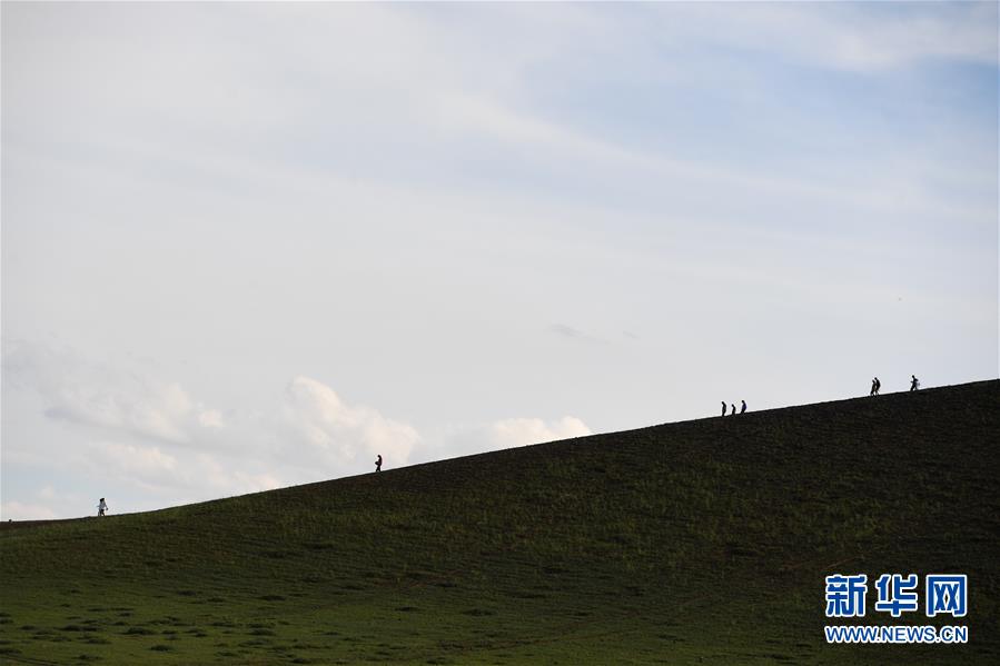 7月29日,游客在乌兰哈达火山地质公园游玩。新华社记者 刘磊 摄