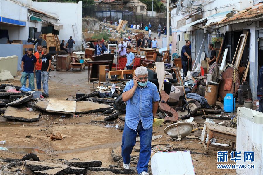 9月8日,在阿尔及利亚首都阿尔及尔,暴雨过后一片狼藉。 阿尔及利亚首都阿尔及尔7日发生强降雨,部分地区道路和房屋受损。 新华社发