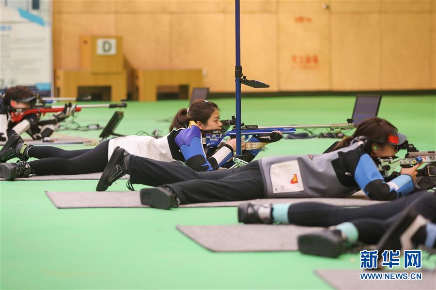 9月26日,山东队选手张佳琪(中)在比赛中。 当日,在湖北宜昌进行的2020年全国射击冠军赛(步枪项目)女子50米步枪三种姿势决赛中,山东队选手张佳琪以463.4环的总成绩夺得冠军。 新华社记者丁汀摄