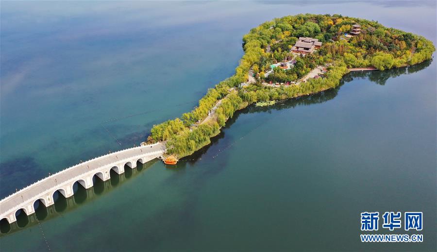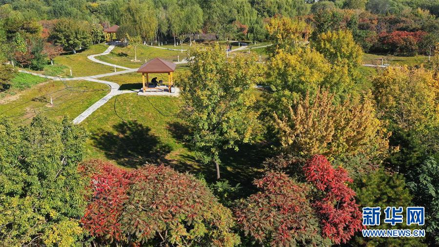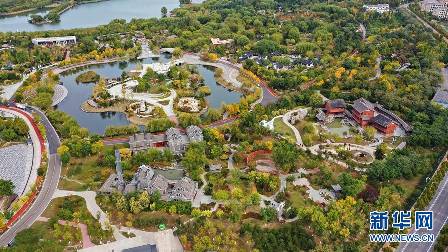 这是10月20日拍摄的唐山市南湖景区(无人机照片)。 河北省唐山市南湖景区是唐山市的“城市绿肺”,由开滦煤矿采煤沉降地经过综合治理形成。秋季,南湖景区层林尽染、花海斑斓、湖水清澈,景区建筑与水面交相辉映,美不胜收,成为市民休闲、健身的好场所。 新华社记者 牟宇 摄