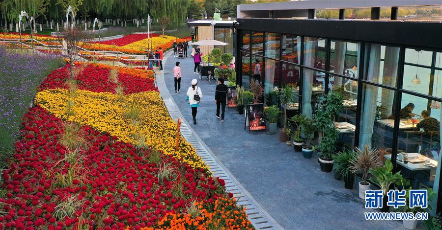 10月20日,游客在唐山市南湖景区游览(无人机照片)。 河北省唐山市南湖景区是唐山市的“城市绿肺”,由开滦煤矿采煤沉降地经过综合治理形成。秋季,南湖景区层林尽染、花海斑斓、湖水清澈,景区建筑与水面交相辉映,美不胜收,成为市民休闲、健身的好场所。 新华社记者 牟宇 摄