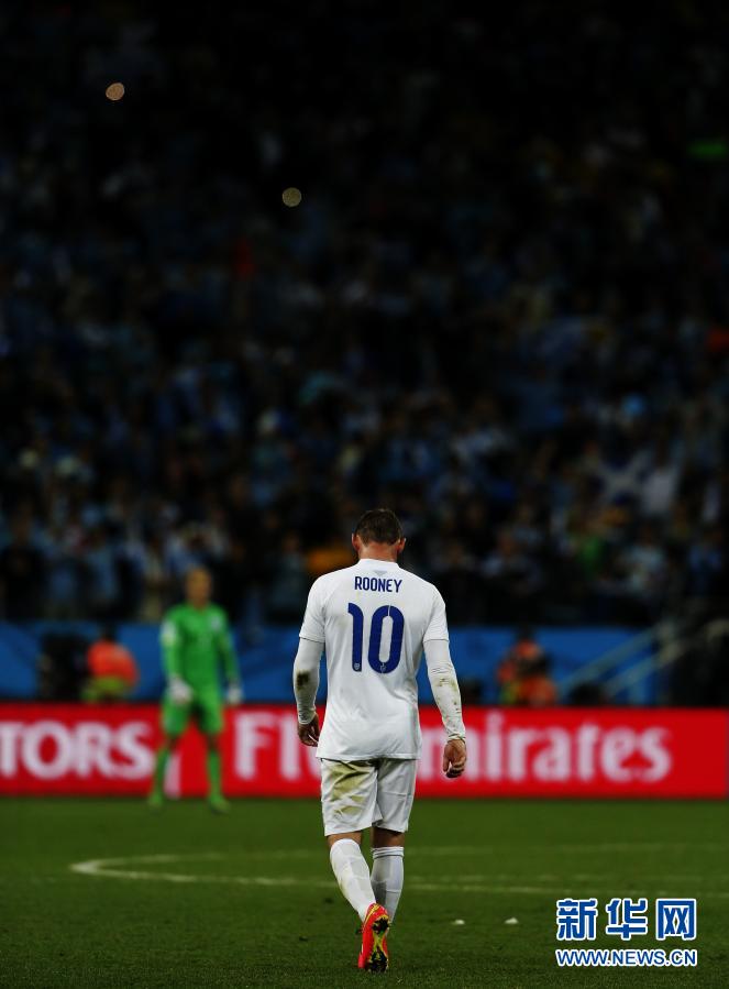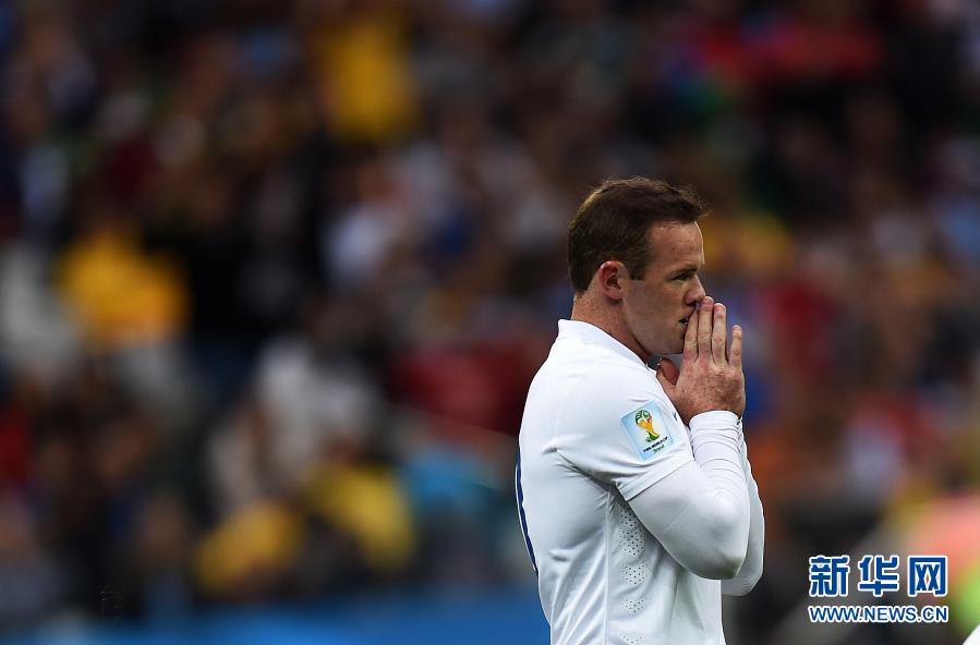 这是2014年6月19日,鲁尼在巴西圣保罗举行的2014年巴西世界杯小组赛D组英格兰队与乌拉圭队的比赛中。 新华社记者 李尕 摄