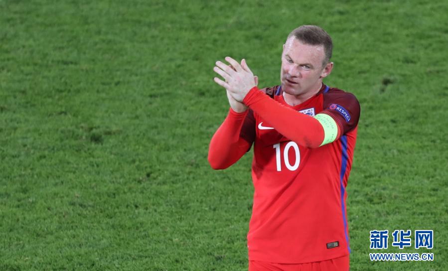 这是2016年6月20日,在法国圣埃蒂安举行的欧洲足球锦标赛小组赛B组英格兰队与斯洛伐克队的比赛后,鲁尼向球迷致意。 新华社记者 白雪飞 摄