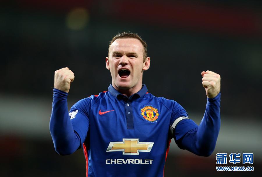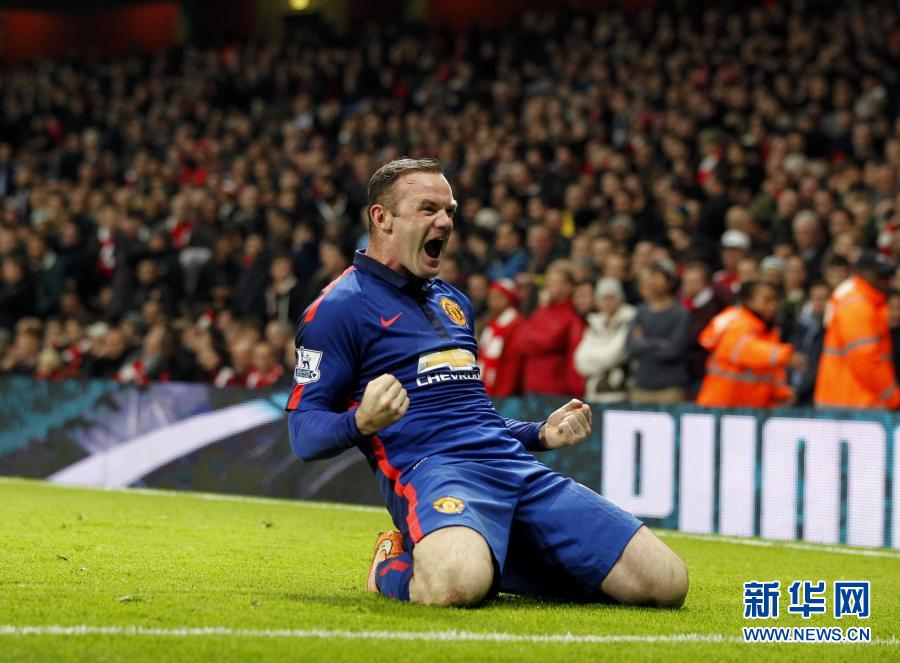 这是2014年11月22日,在2014-2015赛季英超联赛第12轮曼联队与阿森纳队的比赛中,鲁尼庆祝进球。 新华社记者 韩岩 摄