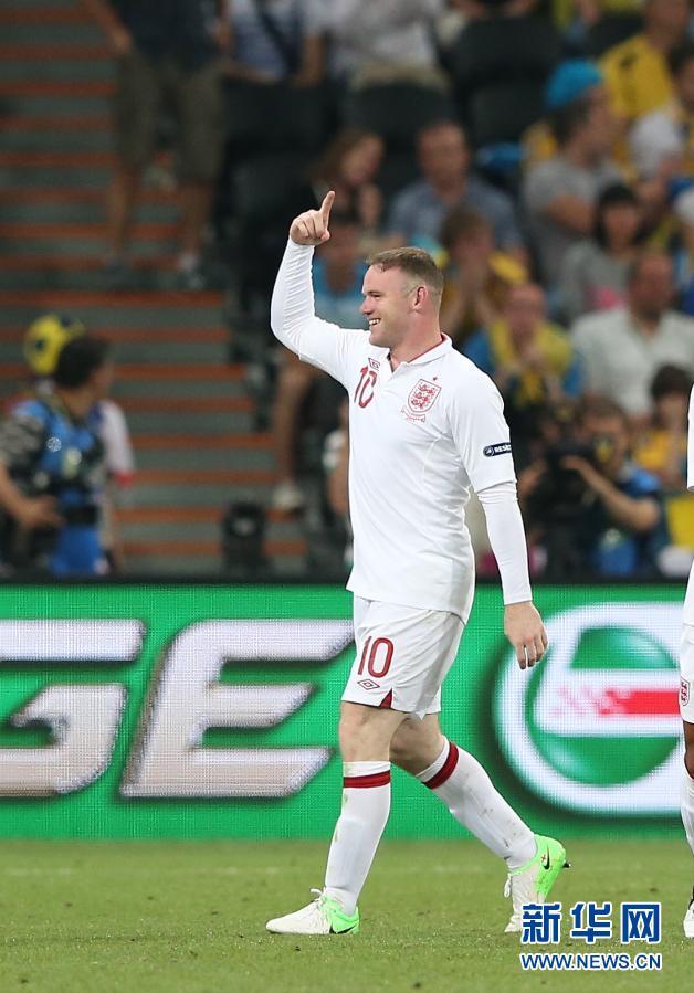 这是2012年6月19日,在乌克兰顿涅茨克举行的欧洲足球锦标赛D组第三轮英格兰队与乌克兰队的比赛中,鲁尼庆祝进球。 新华社记者 孟永民 摄